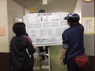 会場図を貼ったり、黒板に「バルーンでクリスマスリースを作ろう」の、タイトルを書いたり、ポップコーンコーナーの準備をしたり、大人たちが一生懸命に準備をしています。